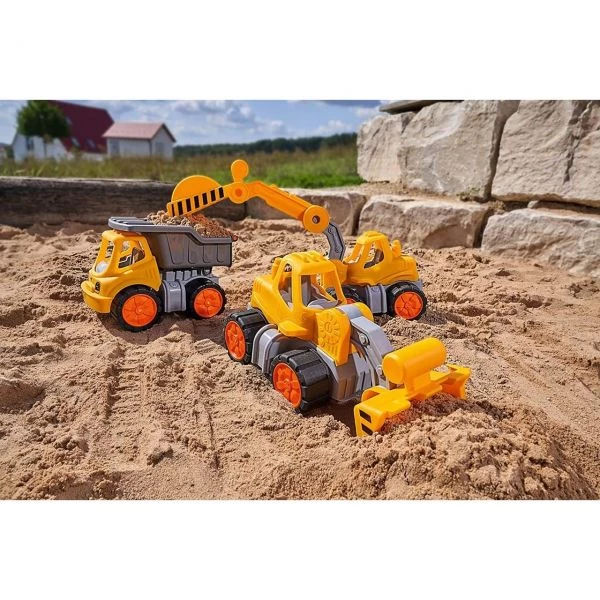 Egal ob drinnen im Spielzimmer oder draußen auf der Wiese. Durch das Softmaterial der Reifen, fährt der Spielzeug Kipper praktisch auf jedem Untergrund. Auch im Sandkasten kann das Auto genutzt werden. Danach können Sie es mit Wasser abspülen und schon glänzt das Auto wie neu.
