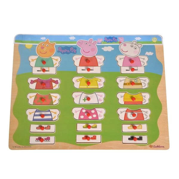 Bei diesem schönen Puzzle können die Kinder die unterschiedlichsten Kleidungsstücke zusammen puzzeln. Alle Puzzleteile sind unterschiedlich miteinander kombinierbar. Das Eichhorn Einlegepuzzle, Mix und Match fördert die Feinmotorik, das Zuordnungsvermögen, sowie das Kombinationsvermögen, die Phantasie und die Konzentration. Für Kinder ab zwei Jahren geeignet.