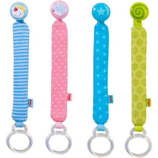 - dank eines praktischen Clips sitzen Schnullerband und Schnuller sicher an der Kleidung von Babys