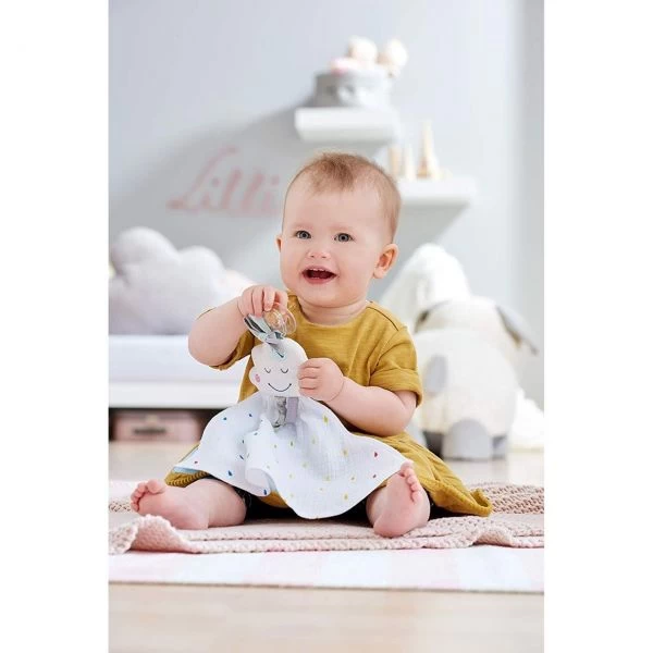 Das putzige Schmusetuch Traumwolke von HABA hilft Babys beim Zahnen und Einschlafen