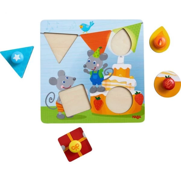 Das liebevoll gestaltete Greifpuzzle Geburtstagsmäuse von HABA ist erster Puzzle-Spaß für die Kleinsten