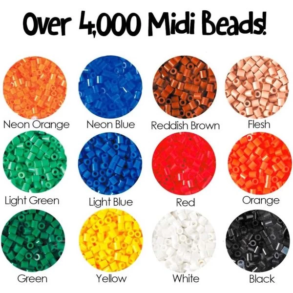 Enthält Perlen der Größe Midi mit 5 mm Durchmesser, diese sind empfohlen für das Basteln mit Kindern ab 5 Jahren, das Bügeln sollte ein Erwachsener übernehmen