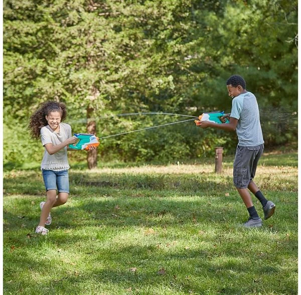 Der Wasserblaster mit dem Überraschungsmoment. Der Super Soaker Splash Mouth bietet zwei Spritzmodi: Wasserstrahl und Splash-Attacke! Wenn es die Situation erfordert, öffnet sich der Schlund und ein halber Liter Wasser ergießt sich auf die Mitspieler. So macht Super Soaker doppelt Spaß!