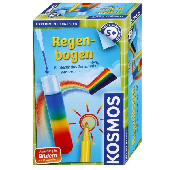 Wie entsteht ein Regenbogen? Was dreht sich im Regenbogen-Karussell? Wie funktioniert die Farb-Werkstatt? In spielerischen Versuchen können die Entstehung eines Regenbogens und die Geheimnisse der Farben anschaulich erlebt und gelernt werden. Das Einsteiger-Set für das erste Experimentieren ab 5 Jahren. Als Vorbereitung für die Schule werden wissenschaftliche Grundlagen spielerisch vermittelt. Attraktive Experimente machen die Kinder neugierig auf die Welt, die sie erwartet. Die leicht verständliche Anleitung erklärt die Versuche in farbigen Abbildungen, sodass das Experimentieren auch ohne Lesekenntnisse möglich ist.