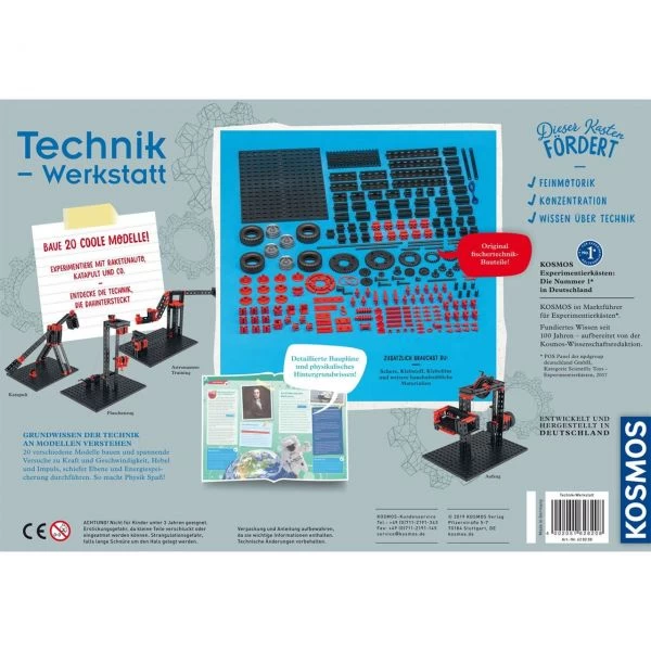 Wie funktionieren AufzĂŒge? Wie ging es auf Baustellen zu, bevor es KrĂ€ne gab? Was passiert beim Astronauten-Training? Welche KrĂ€fte wirken beim Fliegen? Kinder von 8 bis 14 Jahren bauen zwanzig durchdachte Modelle, mit denen sie alltĂ€glichen, physikalischen PhĂ€nomenen in zahlreichen Experimenten auf den Grund gehen. Schon bald sind Begriffe wie Getriebe, Mechanik, Geschwindigkeit und Energiespeicherung keine Fremdworte mehr. Ob Raketenauto, Katapult und Co., die Anleitung erklĂ€rt ausfĂŒhrlich, wie die Modelle aus dem umfangreichen Experimentiermaterial aus fischertechnik-Bauteilen mit Grundplatten, Rahmenteilen, StĂ€ben, ZahnrĂ€dern und RĂ€dern richtig zusammengebaut werden. ZusĂ€tzlich hĂ€lt die Anleitung in der Technik-Werkstatt spannendes Hintergrundwissen ĂŒber die wichtigsten Grundlagen der MINT-Wissenschaft Physik bereit.