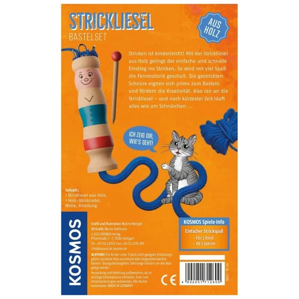 Die Strick-Liesel bietet einen kindgerechten Einstieg ins Stricken mit schnellem Erfolgserlebnis. Mit den beliebig langen Strick-SchnĂŒren lĂ€sst sich Allerlei basteln und ganz nebenbei werden auch noch die Feinmotorik und die Geduld der Kinder geschult. Im Anleitungsheft finden sich neben einer Schritt-fĂŒr-Schritt Anleitung auch schöne Anregungen zum Basteln mit den Strick-SchnĂŒren.