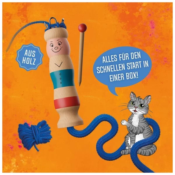Dank der lustigen und leicht verstÀndlichen Bild-Anleitung finden Kinder sich im Handumdrehen mit der Strick-Liesel aus Holz zurecht: