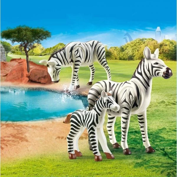 Das Spielset besteht aus zwei Zebrafiguren und einem Zebrababy.