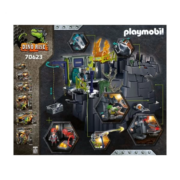 Das Spielset enthält die Dino Rise-Charaktere Ian, Ludmilla und Ralph, einen Stegosaurus, ein Testlabor mit Analysestation, Energiesteine, ein Bohrfahrzeug sowie einen Dinofelsen und viele weitere Extras für actionreiche Dinoabenteuer.