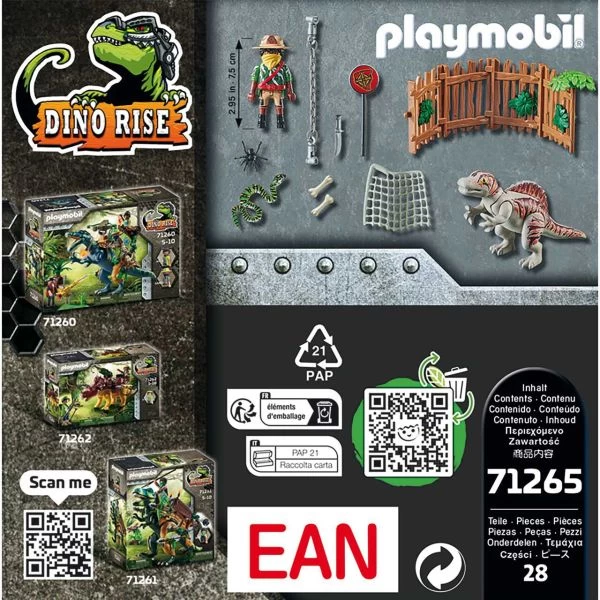 Welcome to the Jungle! Ihr nächstes Abenteuer führt Team Dino Rise in den Dschungel. Böse Wilderer haben ein Spinosaurus-Baby gefangen und in einen Käfig gesperrt. Das kann Team Dino Rise natürlich nicht tatenlos hinnehmen. Doch um den kleinen Dinosaurier zu befreien müssen sie den Schurken überlisten und den Käfig öffnen. Mit originellen Charakteren, eindrucksvollen Dinosauriern und raffinierten Rüstungen bietet die Dino Rise-Spielwelt von PLAYMOBIL die perfekte Kombination aus Dino Action und Spielspaß. Ein tolles Geschenk oder Mitbringsel für Dinofreunde ab 5 Jahren.