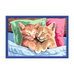 Zwei süße, kuschelnde Katzen im Bett zum Ausmalen mit Acrylfarben