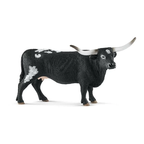 Schwarzes Longhorn mit weißen Flecken zum Spielen oder als Sammelfigur