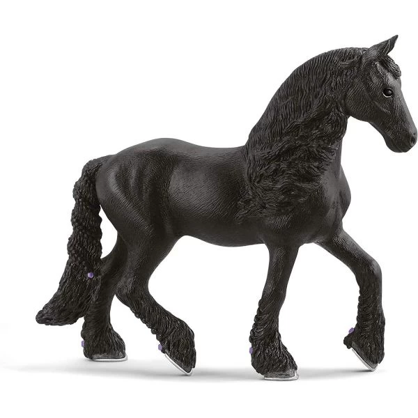 Friesen wurden nach ihrer Heimat, dem niederländischen Friesland, benannt und sind eine der ältesten Pferderassen Europas. Sie haben eine charakteristische schwarze Fellfärbung, eine prachtvolle Mähne und einen hübschen Schweif. Ein weiteres Highlight der Friesen sind die langen Haare an ihren Beinen. Die Friese Stute von Schleich® Horse Club hat an ihrem Fesselbehang kunstvolle Flechtungen, was sie zu einem einzigartigen Sammlerstück macht.