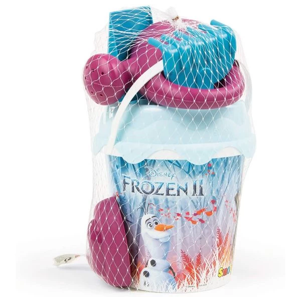 Genau richtig für kleine Badenixen die Sandeimergarnitur mit großem Disney Die Eiskönigin 2 Motiv! Ausgestattet mit Sandeimer (Ø 17 cm) Gießkanne Schaufel Rechen und Sandförmchen ist Spielspaß garantiert Macht am Strand und auch im Sandkasten Spaß!